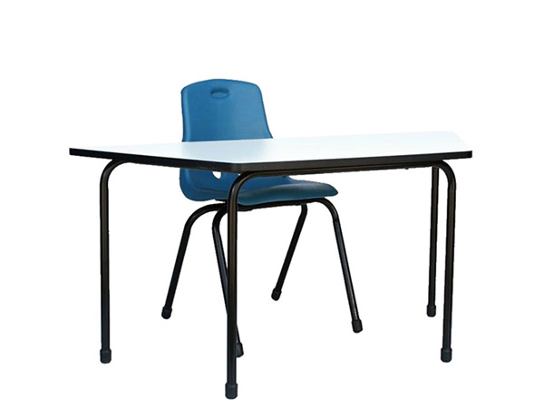 - Cubierta fabricada en melamina blanca de 16 mm de espesor, con cantos de PVC negro, estructura tubular fija en color negro y tapón de polipropileno.