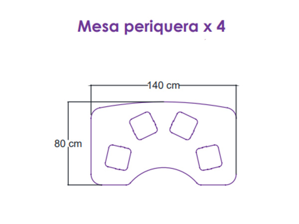 - Cubierta fabricada en MDF con 4 asientos de plástico polipropileno de primera calidad con cinturón de seguridad